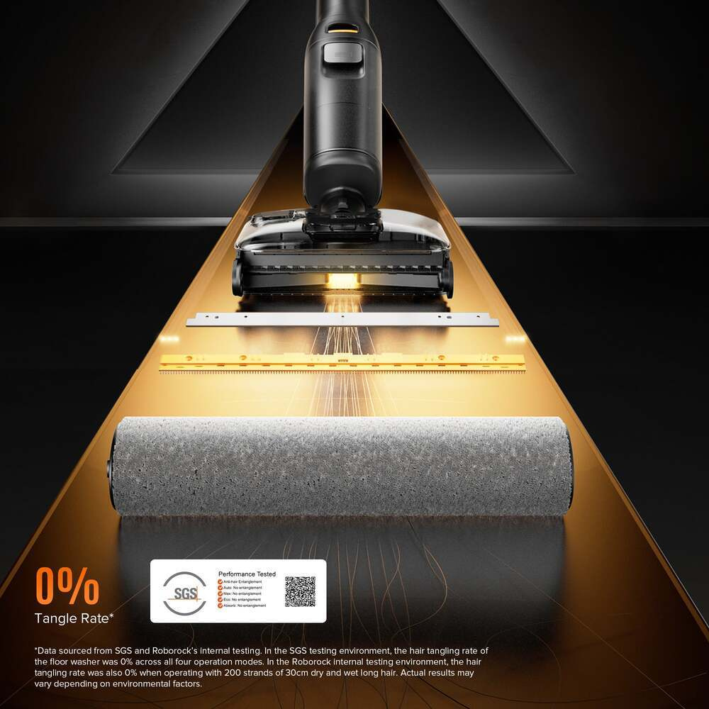 Automatický dávkovač čistiaceho prostriedku zabezpečuje optimálne dávkovanie čistiaceho prostriedku až na 30 dní. Inovatívny valec so žraločími zubami JawScrapers™ účinne zachytáva vlasy a dlhé vlákna, zatiaľ čo stály tlak stierky zabraňuje vzniku šmúh. Vďaka technológii FlatReach™ 2.0 s výškou len 12,5 cm sa dostane aj pod nábytok pri zachovaní plného sacieho výkonu.